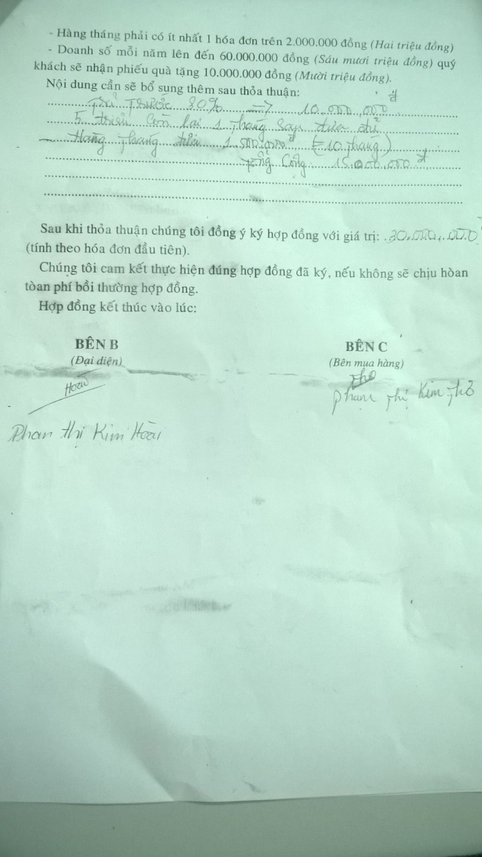 Hợp đồng mua bán giữa Mỹ Phẩm Mai Hân giả và khách hàng (ảnh do khách hàng cung cấp)