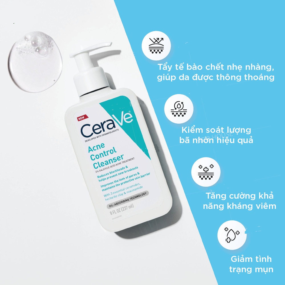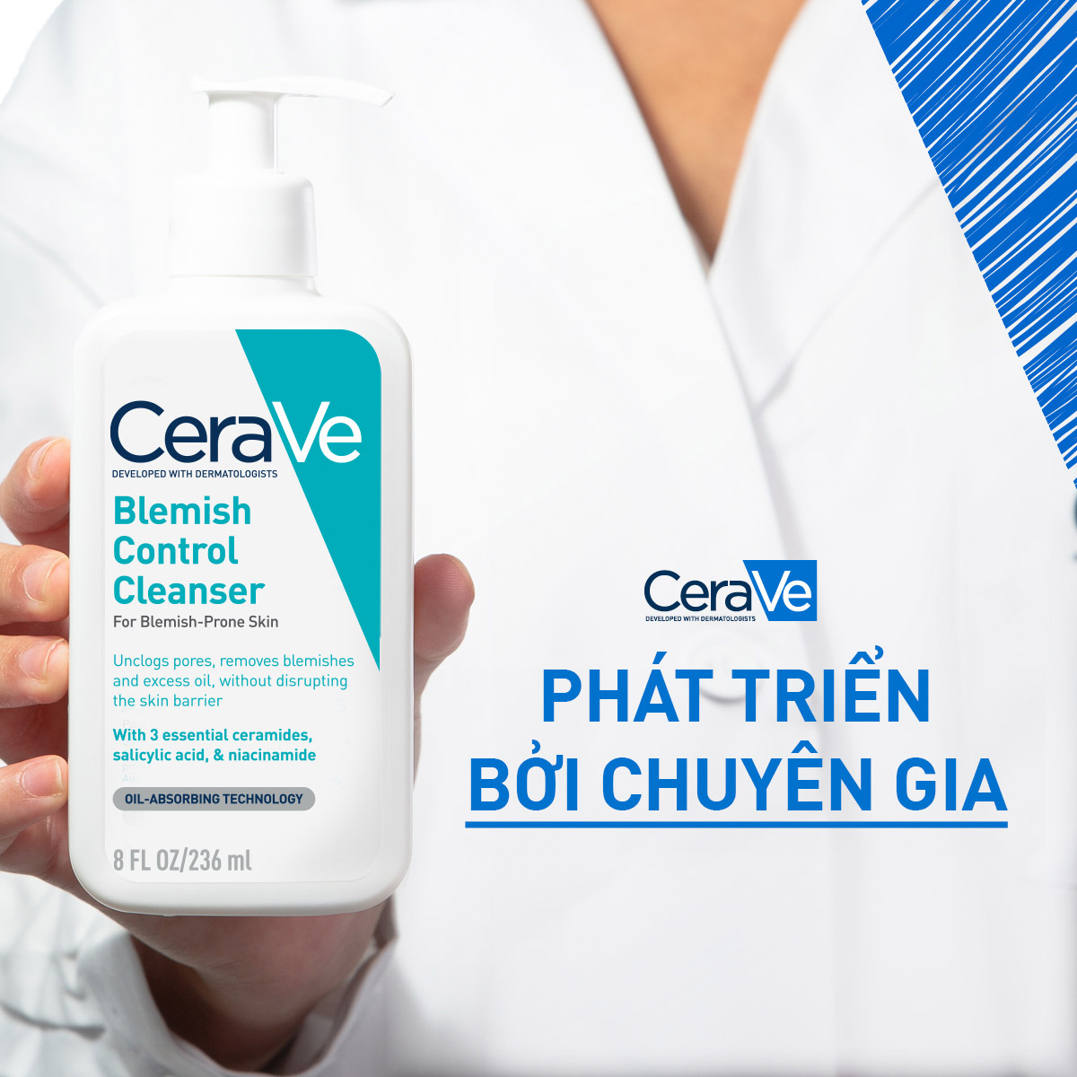 Sữa rửa mặt dạng gel tạo bọt cho da dầu mụn Cerave Blemish Control Cleanser