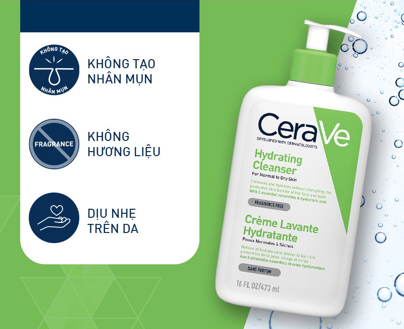 Điểm chung của làn da khô chính là thiếu độ ẩm và dễ khiến tình trạng da yếu đi, nhanh lão hóa. Với CeraVe Hydrating Cleanser sở hữu công thức MVE độc quyền mang hoạt chất dưỡng ẩm sâu Ceramide, Hyaluronic Acid sẽ giúp làm sạch, cân bằng độ ẩm và duy trì hàng rào bảo vệ da cho làn da khỏe mạnh.