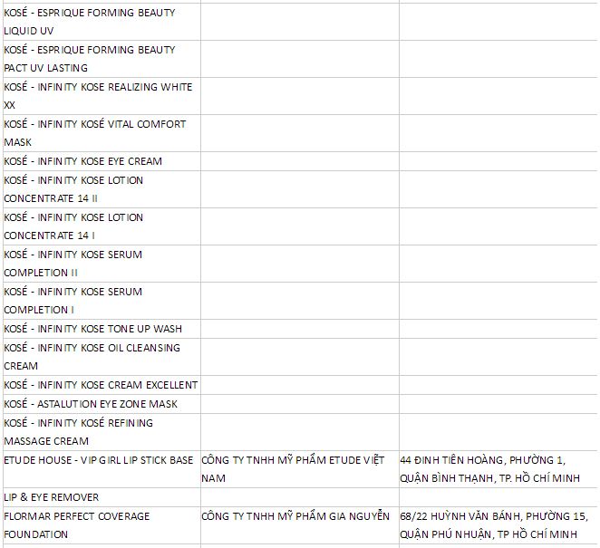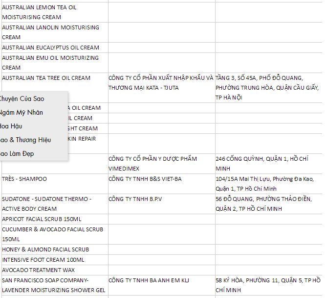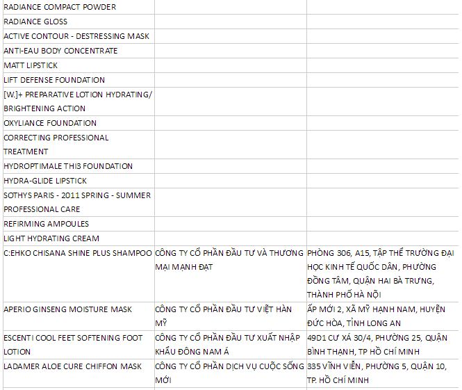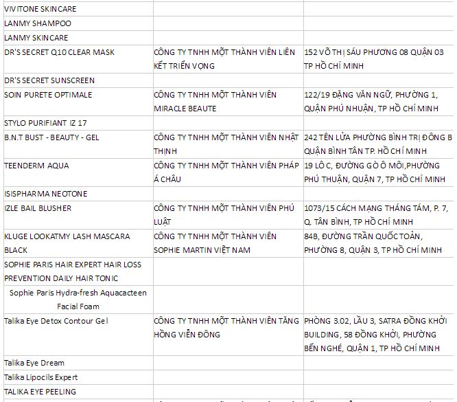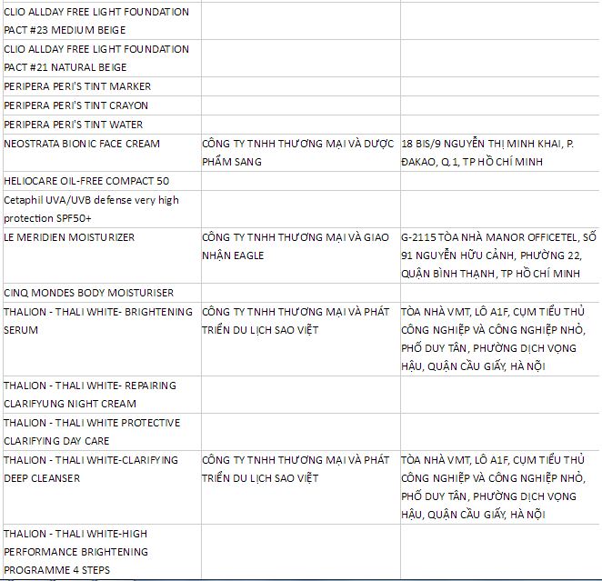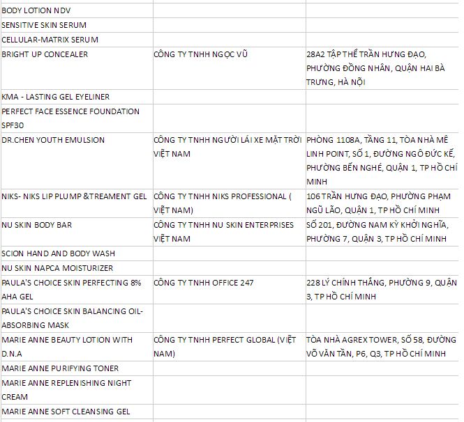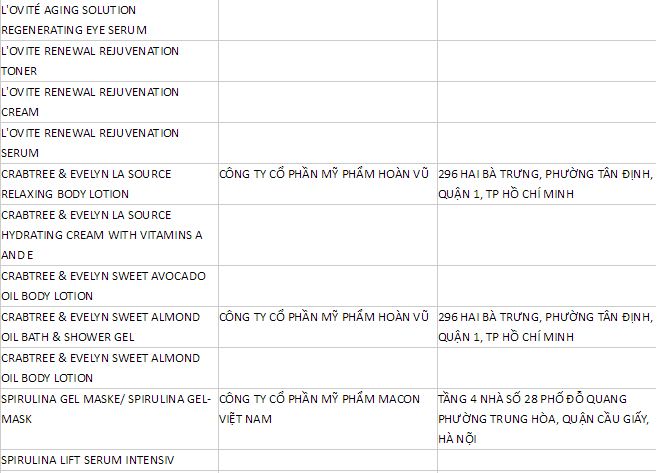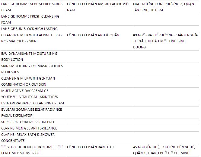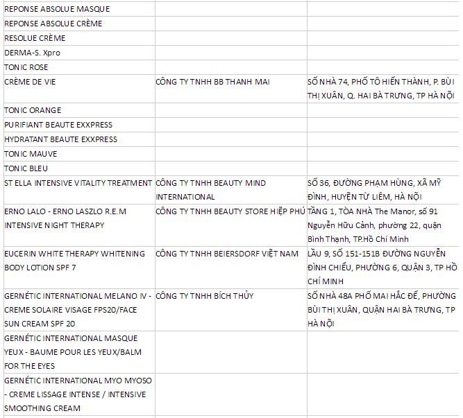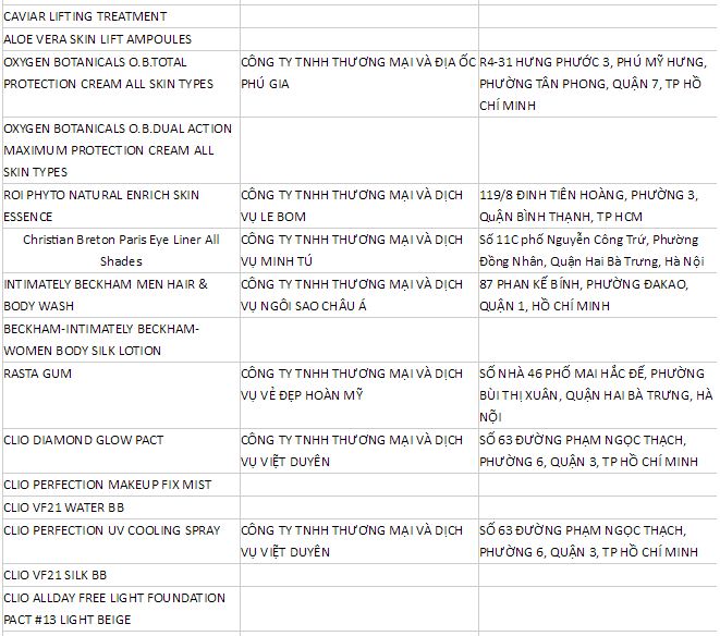Dưới đây là danh sách mỹ phẩm nước ngoài có chứa paraben bị thu hồi.