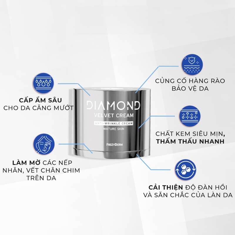 Frezyderm Diamond Velvet Anti-Wrinkle Cream mang lại nhiều công dụng vượt trội cho làn da lão hóa: