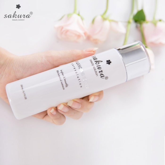 Loại Toner mình hiện đang dùng là nước cân bằng da Sakura Balancing Toner. Với cơ chế 4 tác động độc đáo vừa giúp làm sạch da, cân bằng độ pH, bổ sung độ ẩm, cải thiện se khít lỗ chân lông, hạn chế phát sinh mụn và cải thiện da khô, da dầu nhờn. Điểm ưng nhất của mình về em í là sở hữu bảng thành phần cao cấp, vượt trội hơn với các sản phẩm toner Mi đã sử dụng trước đó rất nhiều.