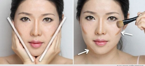 Bạn chỉ nên che đi những đường nét không hài hòa hoặc tôn lên chúng bằng những đường đánh highlight thật nhẹ và mỏng như ở phần sóng mũi, gò má.