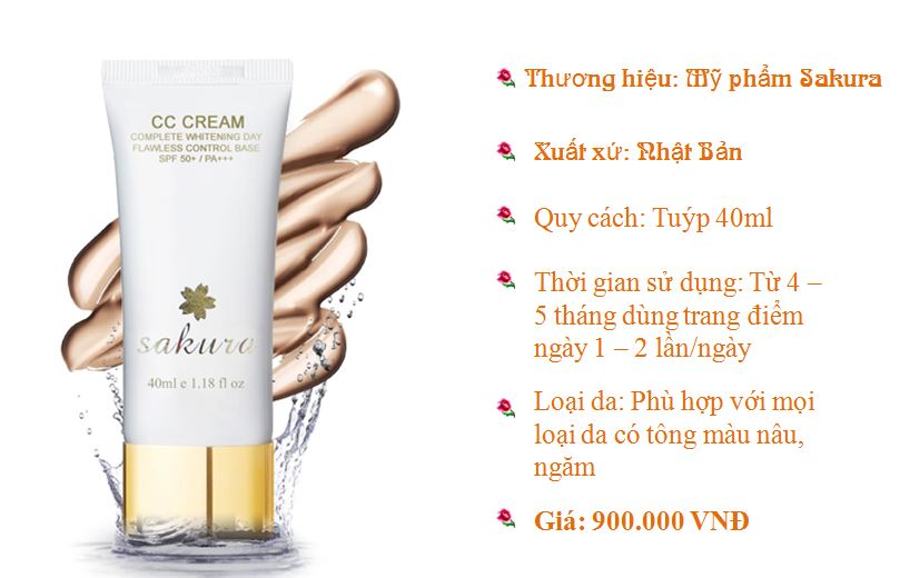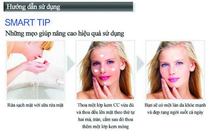 - Thoa 1 lớp mỏng kem dưỡng da SAKURA CC CREAM màu Light lên bề mặt da tán đều.