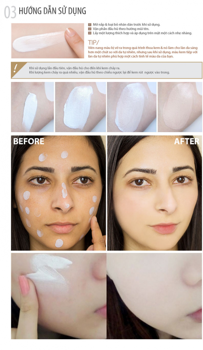 - Làm trắng da,đều màu ngay lập tức với tông màu tự nhiên.