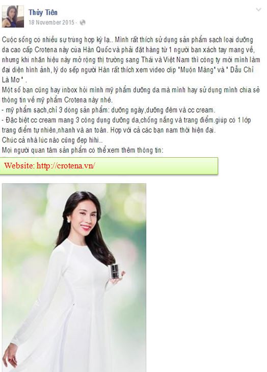 Ca sỹ Thủy Tiên lựa chọn thương hiệu mỹ phẩm Crotena làm đại diện thương hiệu