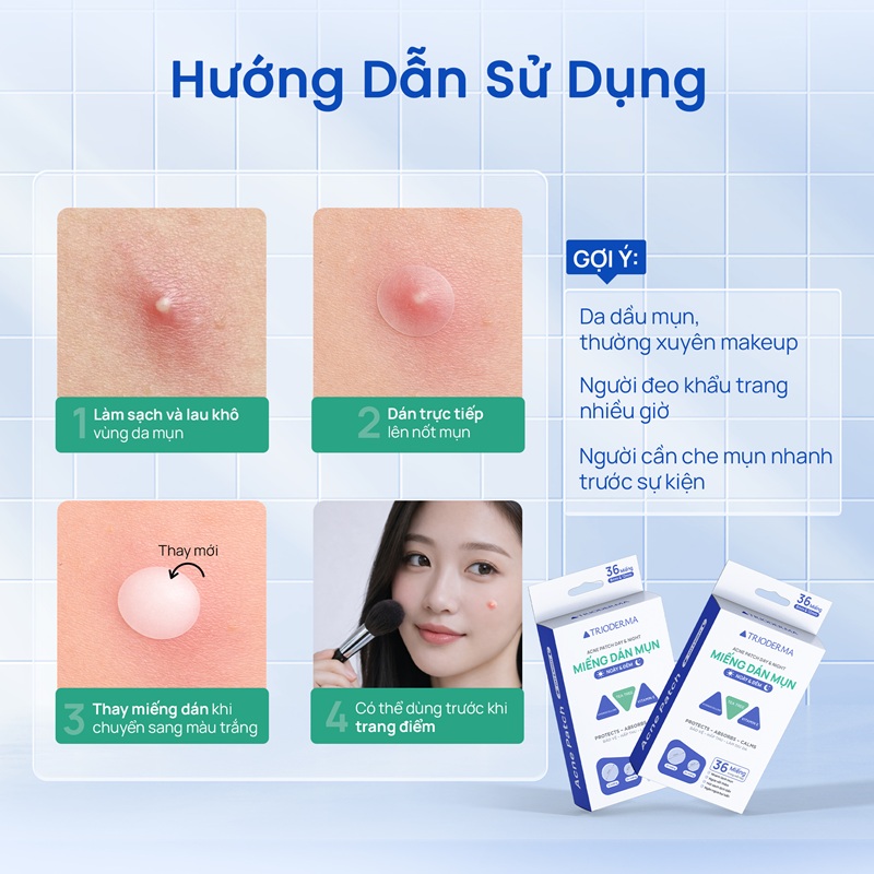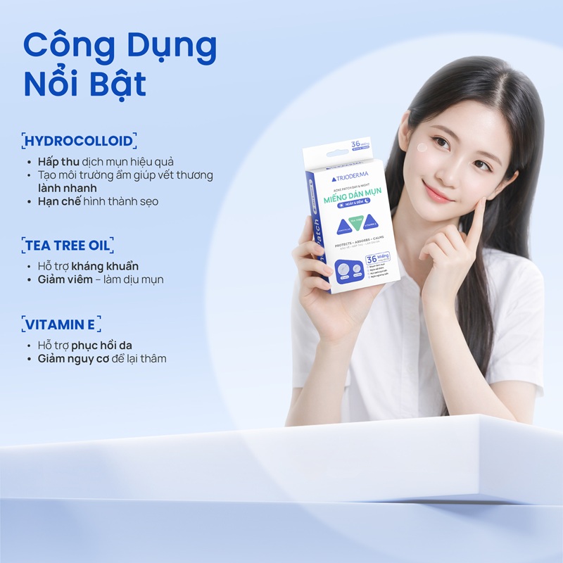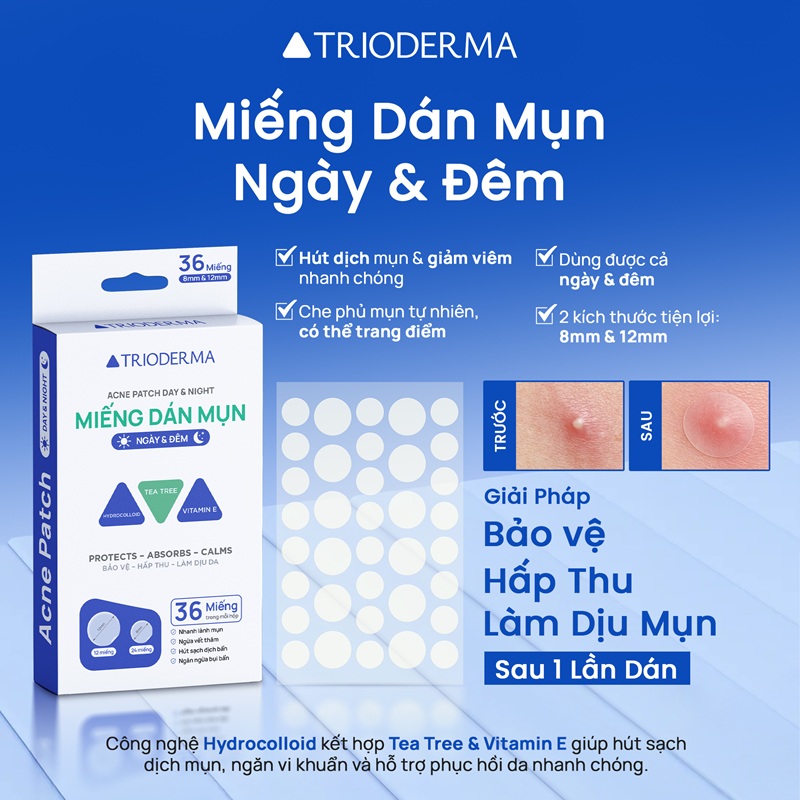 Miếng dán mụn Ngày và Đêm Trioderma chính là giải pháp "vàng" giúp bạn bảo vệ và "dẹp" nốt mụn một cách chuyên nghiệp, thẩm mỹ.
